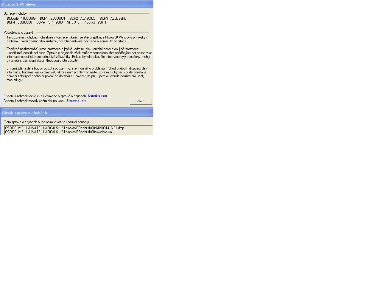 Odkliknul jsem to a tady je zpráva: