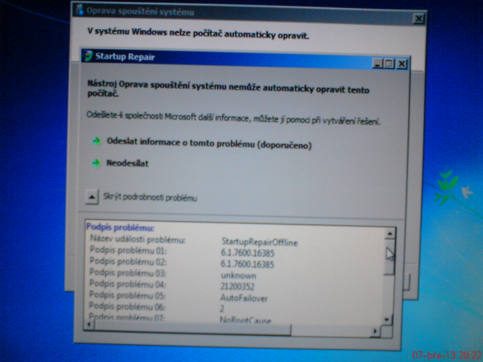 BB 100 100 __0 000000000000 Ohlášeno neopravitelných chyb