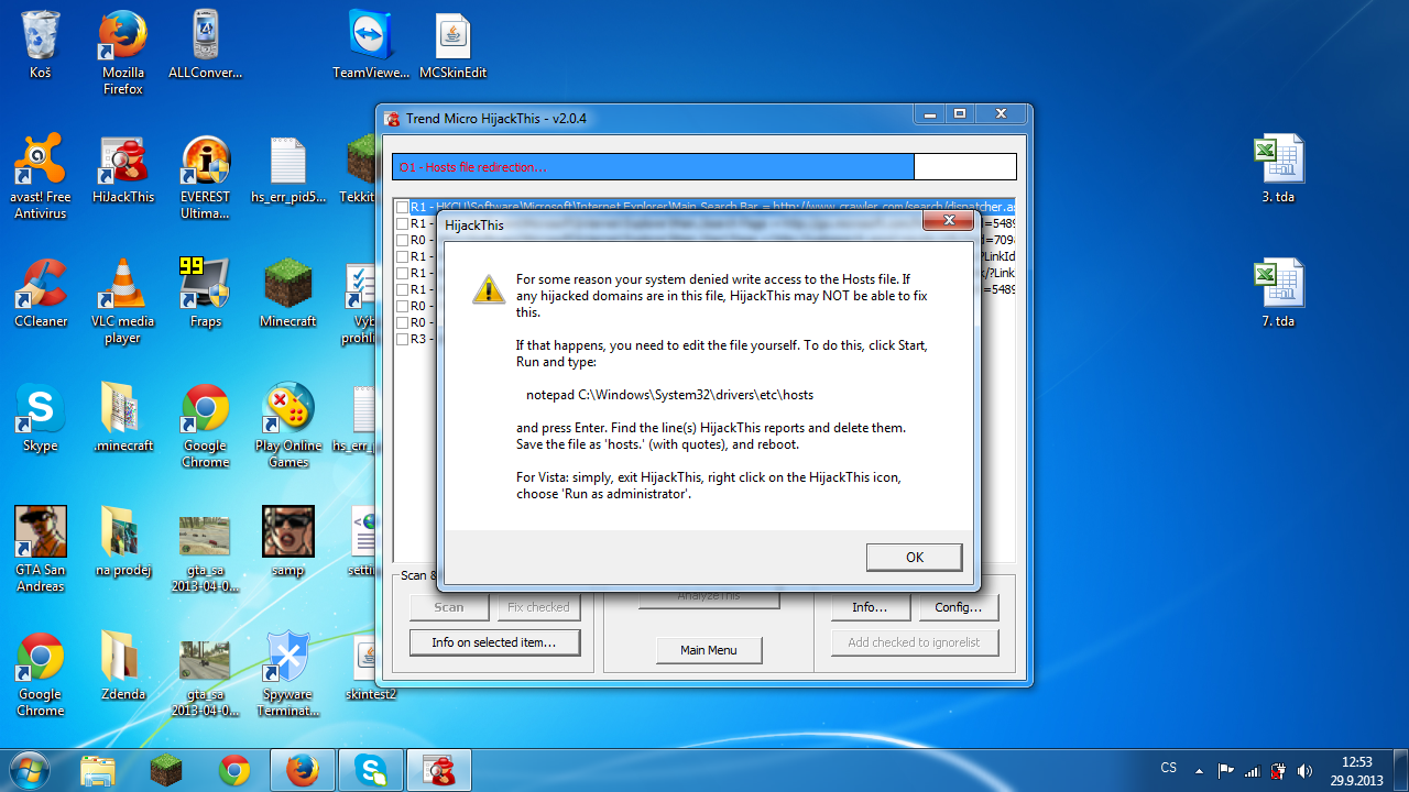 Po instalaci hijactthis jsem chtel udelat log bohuzel mi to napsalo NELZE NALEZT SOUBOR C PROGRAM FILES TREND MICRO HIJACTTHIS HIJACTTHIS.LOG