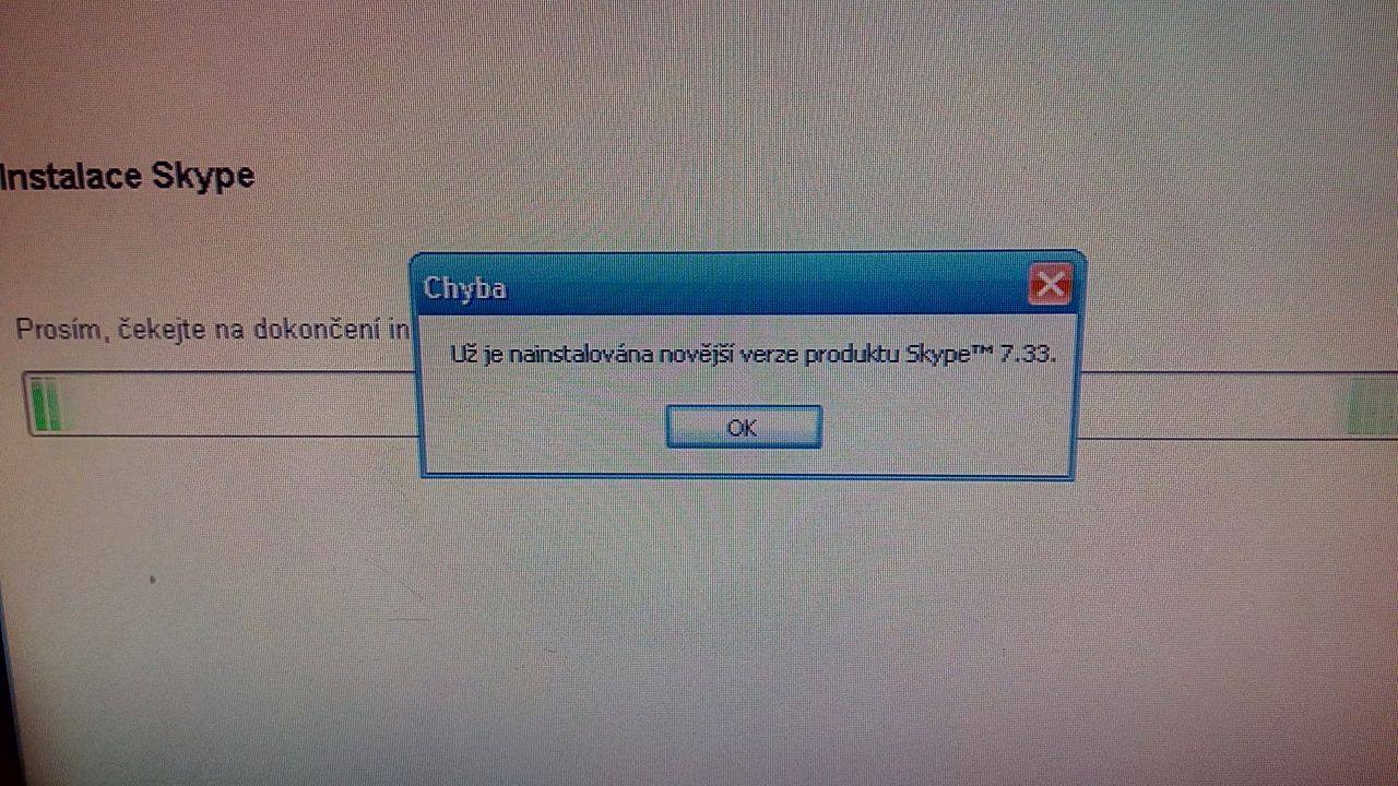 Skype jsem odinstaloval vyčistil Cleanerem.Pak jsem šel na stránku Skype.Stáhl skype pro počítač,nainstaloval.Vše proběhlo v pořádku.Tak jsem skontrojoval verzi skype a vyskočilo okno že je dostupná novější verze,lae když ji chci stáhnout tak další chyba.