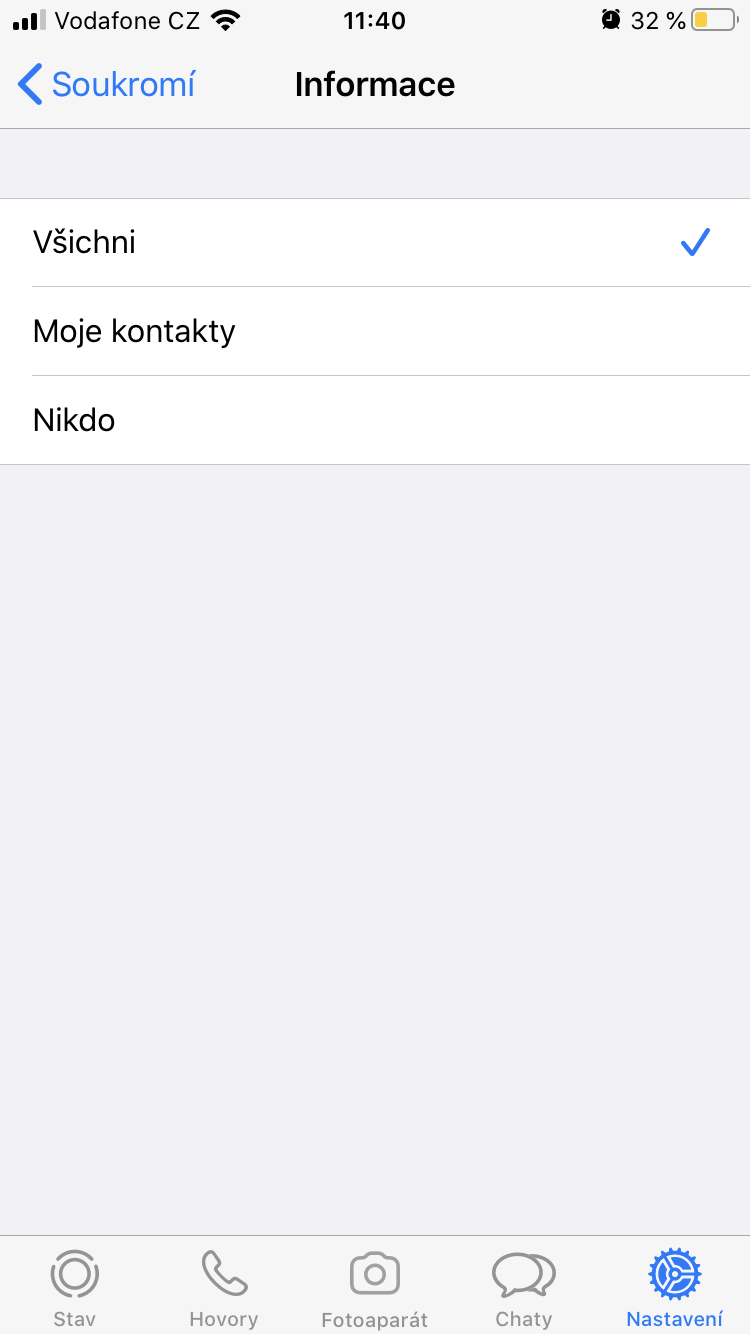 WhatsApp - poslední přihlášení se nezobrazuje.