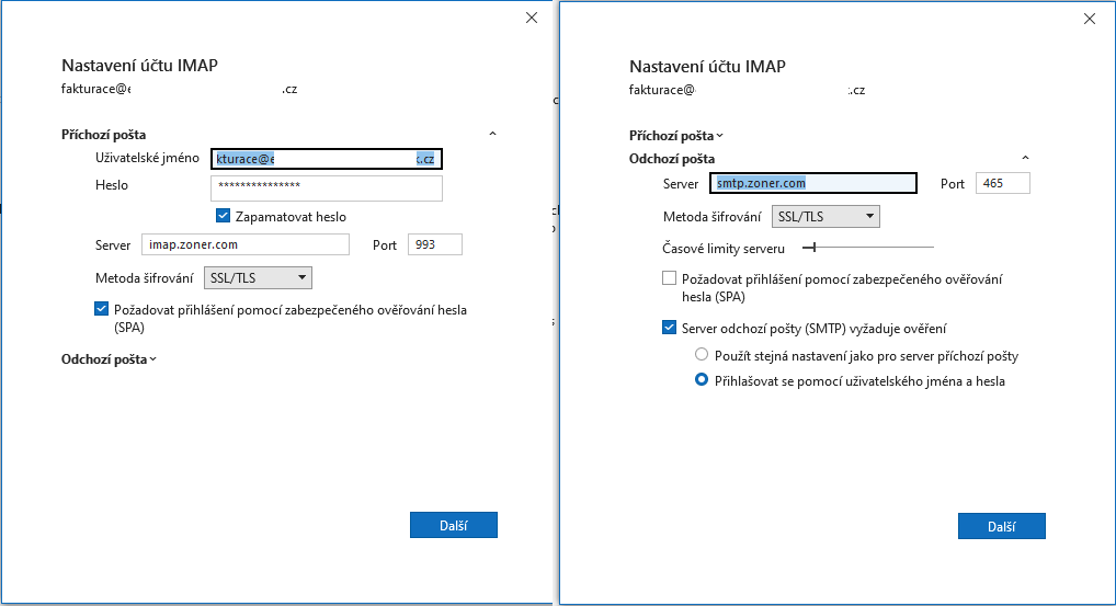 Máme firemní emailové schránky u zoneru. Jedna hromadná na příjem a odesílání faktur "fakturace@xy.cz" má problém a to následující: