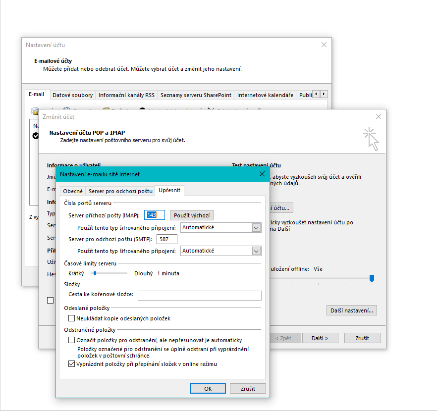 Fungujeme celou dobu přes IMAP viz. příloha.