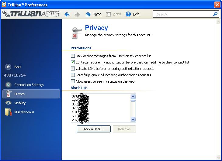 Já raději Antispam bota apod. věci nevyužívám, i člověk se může splést nebo to prostě nepochopí. Preferuji osobní zabanování. Na ICQ mám nastavenou akorát povinnou autorizaci, vždycky jenom najedu na info o ICQ čísle a hned vidím o koho se jedná. Viz. obrázek.