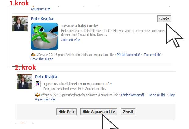 A nebo najeď na své hlavní stránce na tu aplikaci a dej skrýt. Pokud ti to posílají známí, jsou tam dvě možnosti, buď skrýt známého a nebo jen aplikaci, viz. screen.