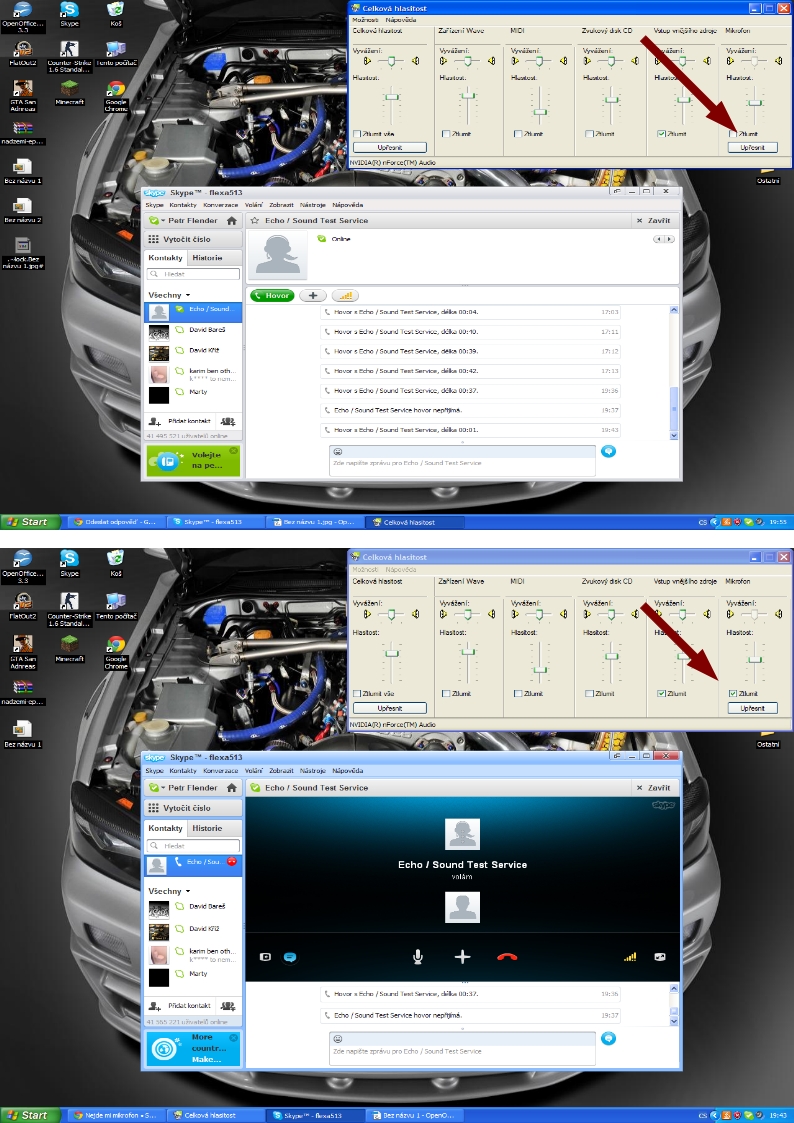 Všechno sem udělal znova podle navodu ,ale když sem zapl hovor na skype tak se mi samo zaškrtne políčko ztlumit.