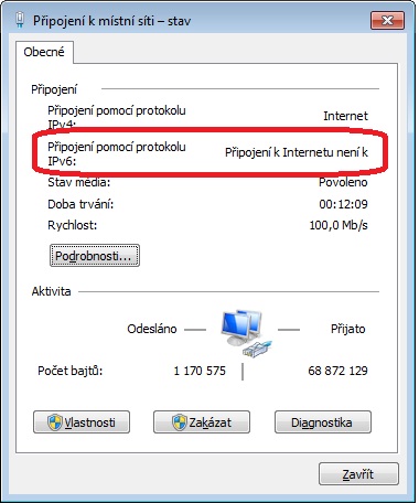 obrázky do přílohy, jsi připojený protokolem IPv4, tudíž nemůžeš být zároveň IPv6