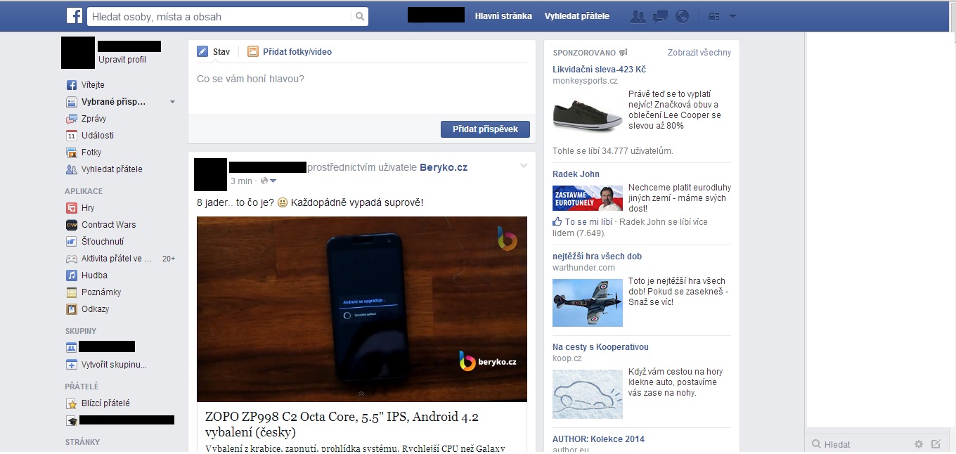 Zdravím, máte někdo také "nový" vzhled Facebooku stejný jako já? Před 2-3 dny se mi to samo změnilo a nikdo jiný z přátel zatím tento vzhled nemá. :smile: Jenom by mě zajímalo o co se jedná proč ho mám zrovna já? :-o Ne, že by se mi nelíbíl, právě naopak.. 8)