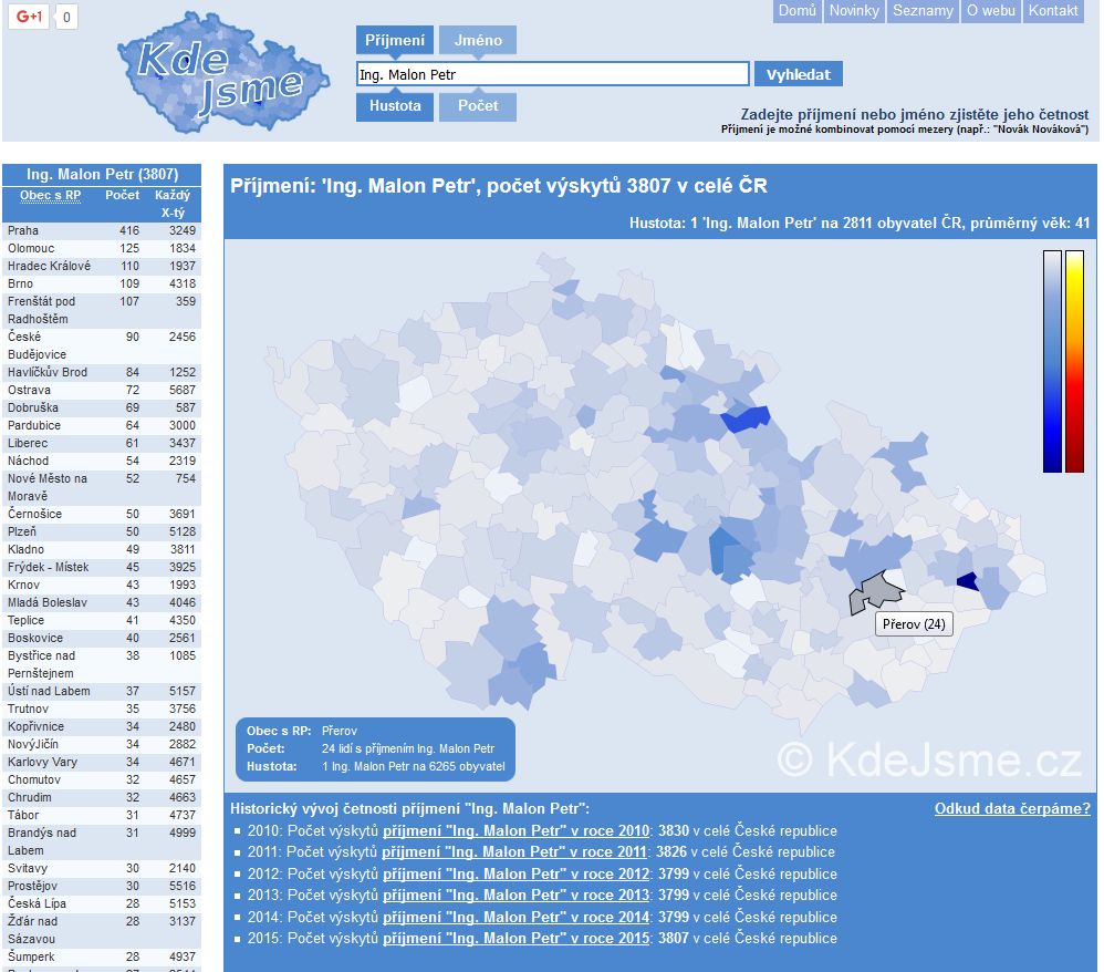 Můžeš vložit jen jméno nebo příjmení. Opravdu myslíš, že je v Přerově 24 Ing. Petrů Malonů?