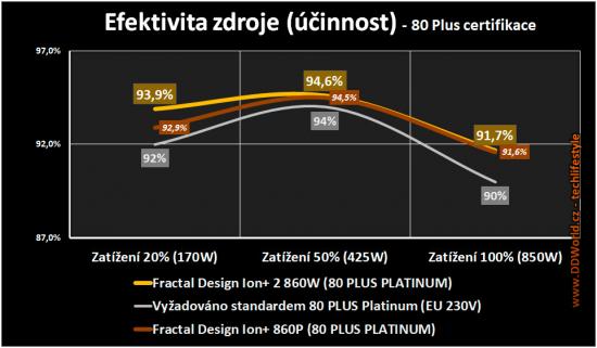 80Plus Platinum certifikace garantuje účinnost zdroje 94% při střední zátěži a 90% při plné zátěži.