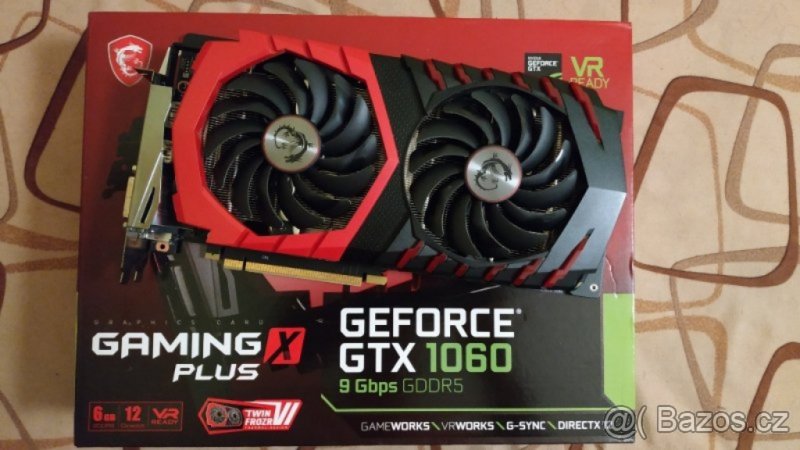 Prodám Grafickou kartu MSI GTX 1060 GAMING X+ 6GB Edice PLUS 9GHz v záruce u TsBohemia do 4.11.2020