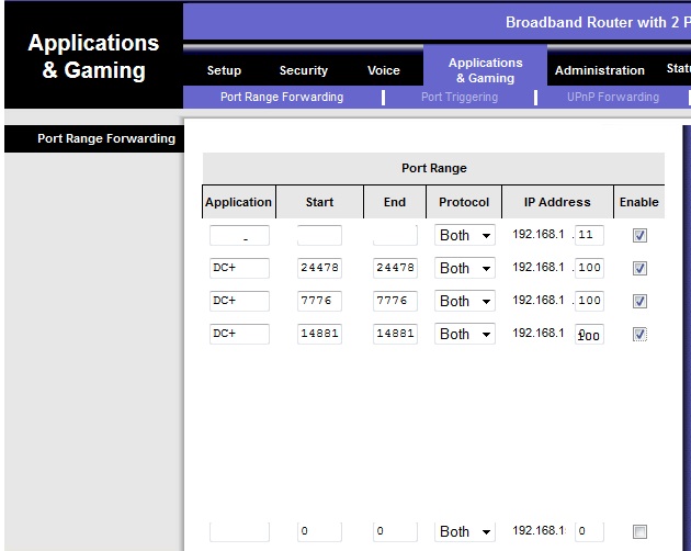 Nedělej to ve virtual serveru, ale napřímo v nabídce port forwarding. Nejjednodušší možnost je dát své PC do DMZ.