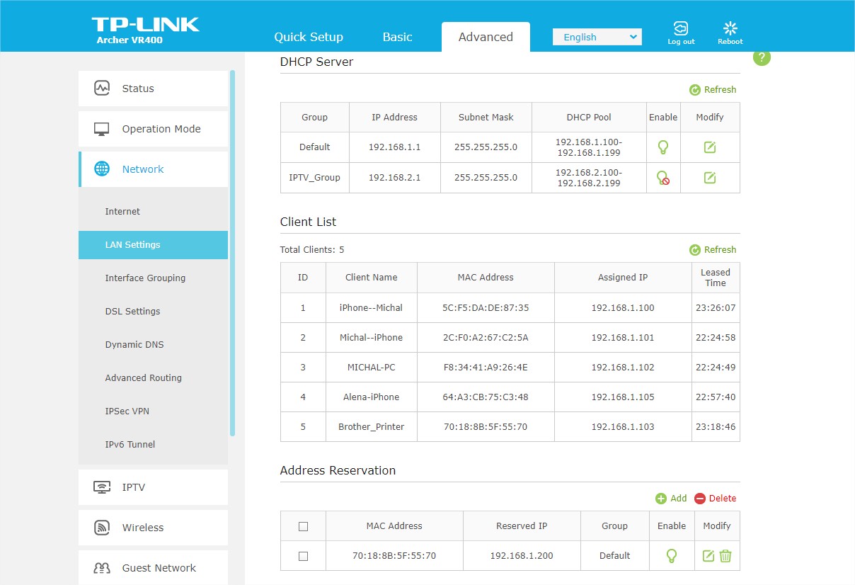 Modem / router: TP LINK Archer VR400