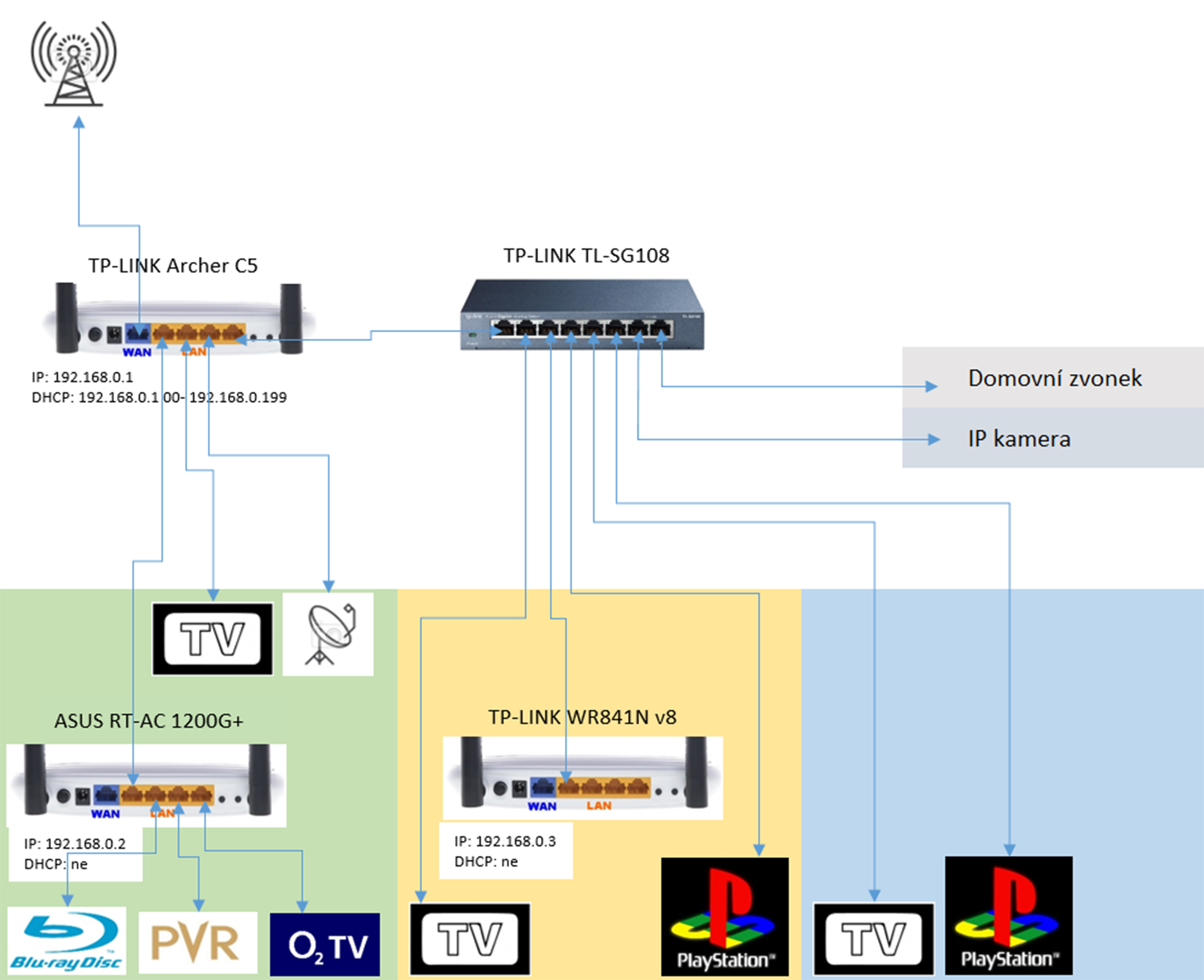 Re: Zapojení hlavního routeru a dvou routerů jako switch