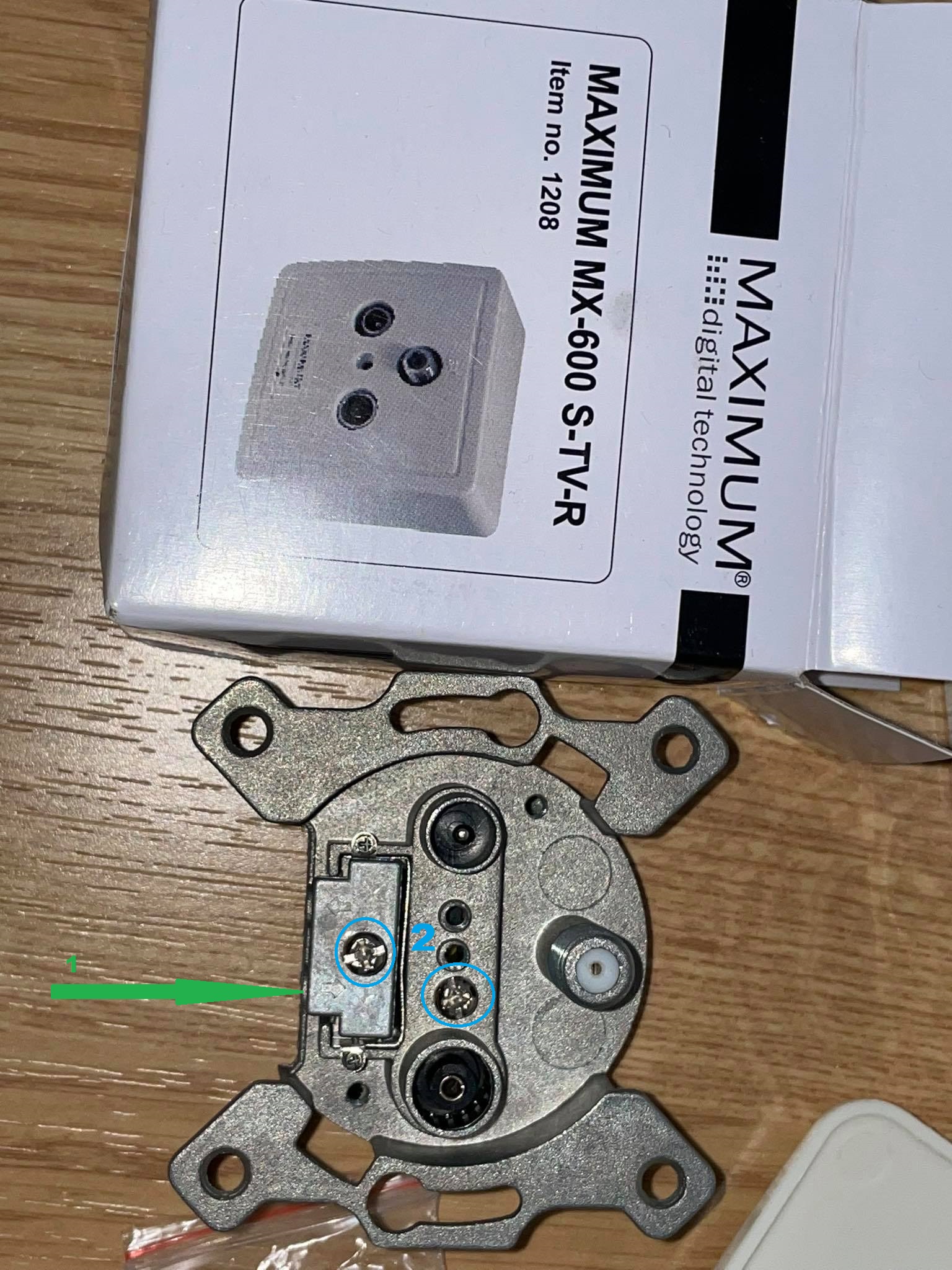 Pokud vyměním zásuvku (obrázek č. 1 a 2) za novou zásuvku, která má výstup i pro TV anténu (obrázek č.3) se shodným zapojením, jako byla výchozí zásuvka, tj. koaxiál ze zdi zapojím do IN šipky a dotáhnu pořádně patřičné šrouby (obrázek č.3), na modemu COMPAL CH7465 začne zeleně blikat ikona internetu a síť není pro desktop PC dostupná (ačkoliv televize programy chytne z antény). Z mobilu se mi povedlo připojit do nastavení modemu a u položky internet, je status: DS scanning.
