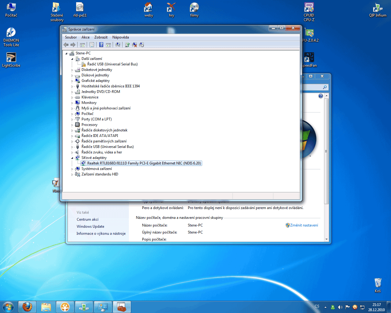 ovládací panely - správce zařízení