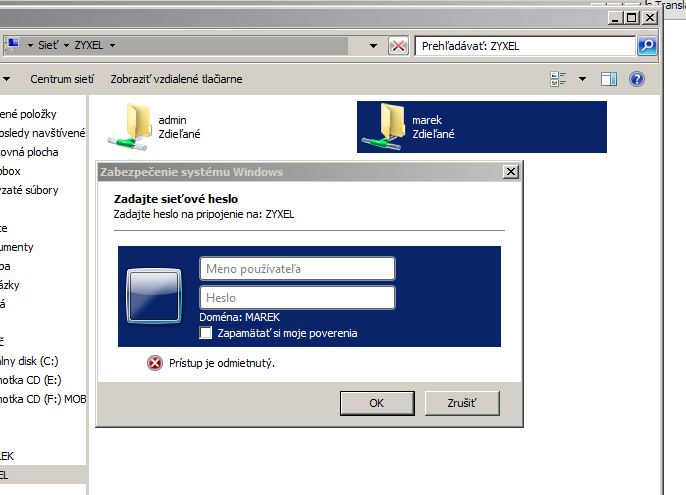 Hlaska ktoru win vyhodi po chvili je ze nemam dostatecna opravneni na atd....\\zyxel\admin\marek