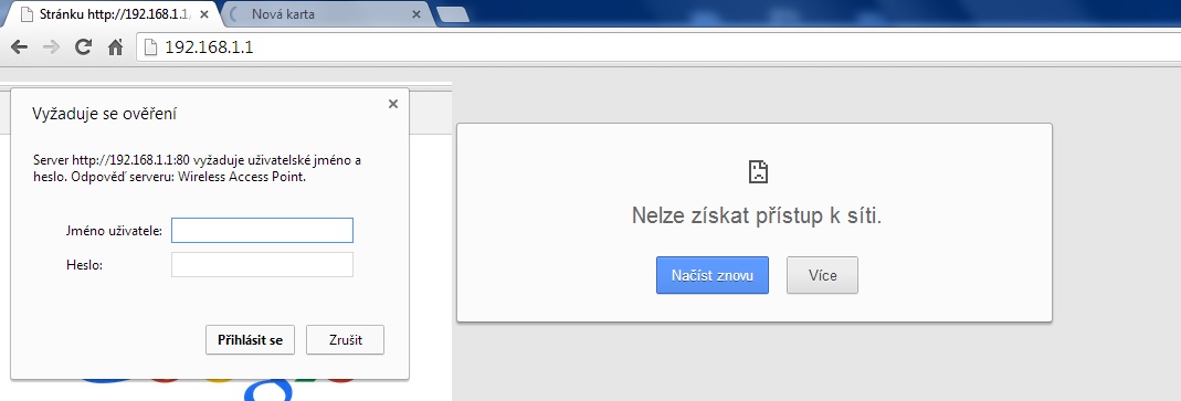 V prohlížeči když zadám jméno heslo, tak se nic nestane.