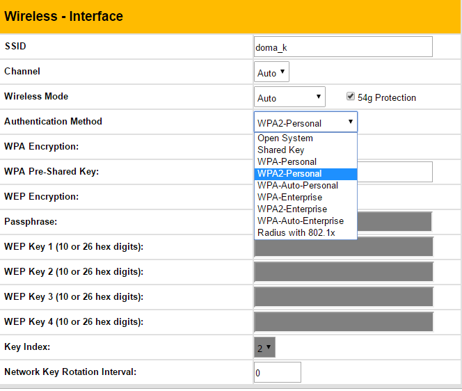 Authentication Method: WPA2 - Personal, WPA Encryption: AES. Přesně takhle mám v Asusu uloženo, kdykoliv ho otevřu, je tam toto, v TP-LINKu samozřejmě také WPA2. Očividně teda ale v reálu běží něco jiného, než je nastavené...