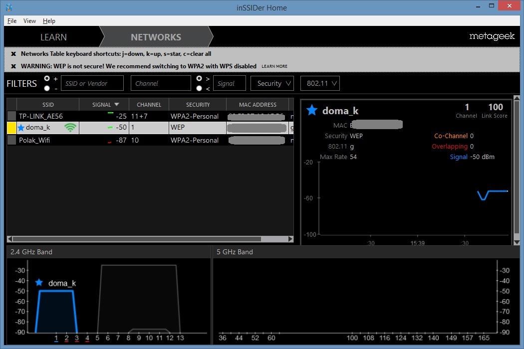 Tvoja je iba tá sieť doma_k ?Včera si mal zmeniť zabezpečenie na WPA2 a tu na screne je zabezpečenie WEP.Tak ako si to nastavil?Asus má zabezpečenie WEP a TP-Link WPA2 ? ITCrowd Ťa upozornil na zmenu kanálu z 1 na nejaký iný.