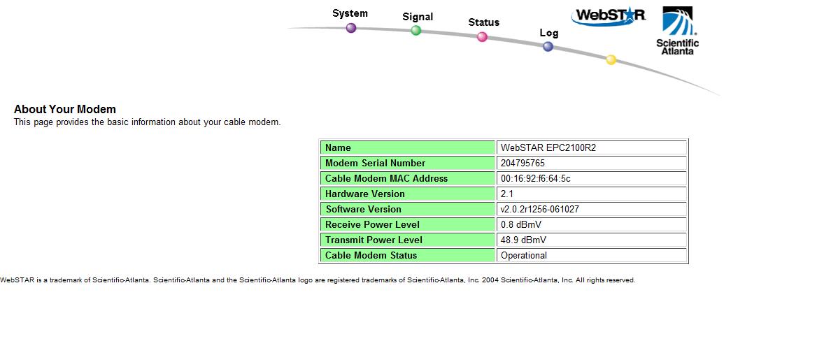 v příloze je screen z uvodni stranky , a tohle to píše když kliknu na Status, Signal nebo Log
