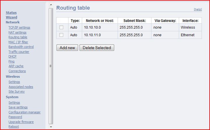 netowrk 10.10.11.0, 255.255.255.0, via 10.10.10.1