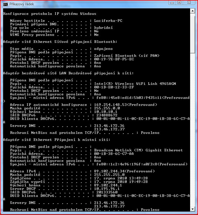 Teď to mám teda připojené k Modemu rovnou, napsal jsem ipconfig /all a kde to tady zjistím ?