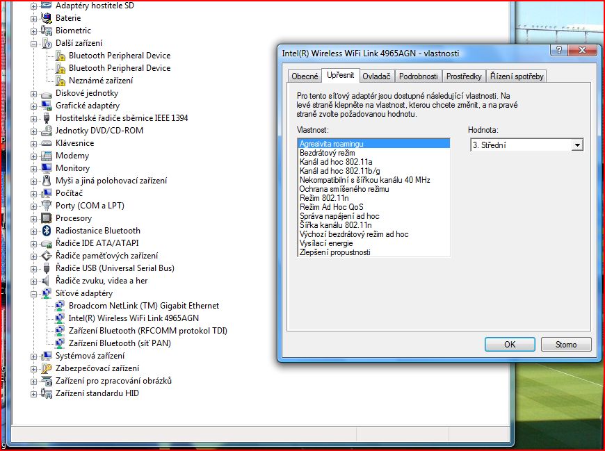 Ok tak jsem hledal v tom správci zařízení ,ale nemůžu to najít , myslel jsem že by to mohlo být to : Intel(R) Wireless Wifi Link 4965AGN , ale když jsem dal Vlastnosti a Upřesnit tak nic takového co si ty popisoval :huh: poradíš prosim ?