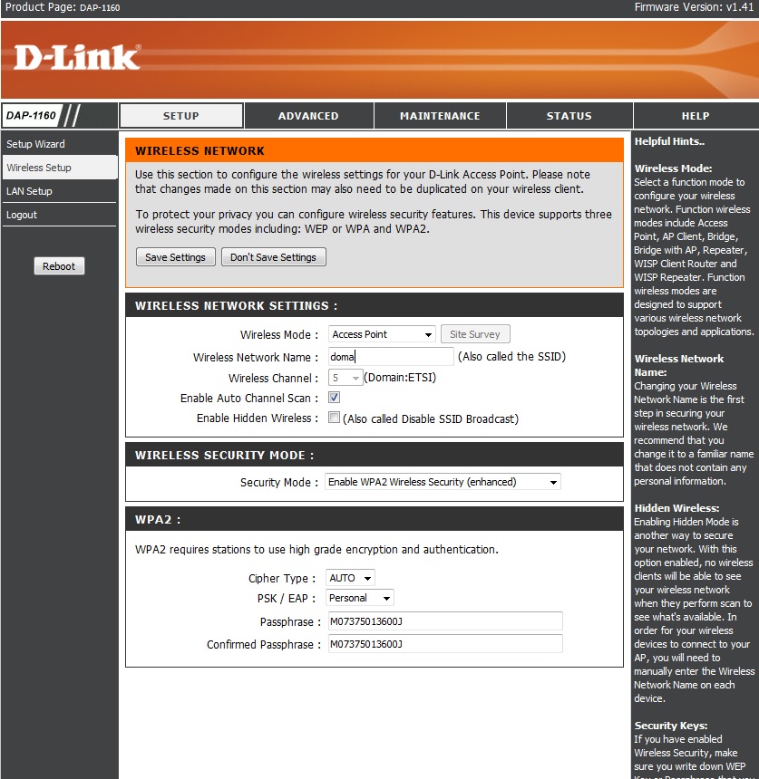 Ahoj, doma se mi rozbilo AP, tak jsem si odkoupil z práce vyřazené AP DAP-1160.