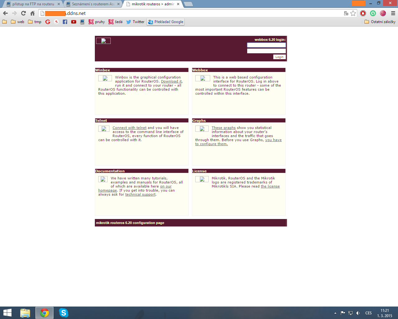 Když zadám IP, kterou mi přiřadil ten no-ip tak mě to ukáže login do Mikrotik Webbox