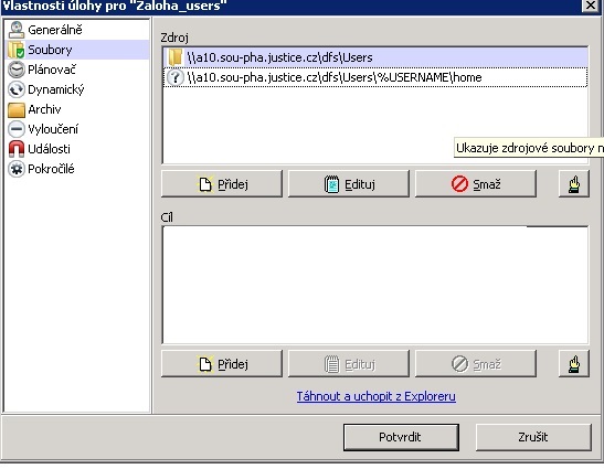 na serveru mi běží Cobian Backup 11 Gravity. Jelikož využíváme cestovních profilů, rád bych každému uživateli zazálohoval složku Home. A teď k jádru problému. Když zálohuju celou složku Users se všemi profily, vše funguje, ale záloha je nekřesťansky a zbytečně veliká (mimo složky Home je tam ještě Settings a Profile). Ale pokud vložím do cesty %Username\home, abych opravdu zálohoval to nejnutnější, tak to nefunguje. Lze to takto v tom Cobianu vůbec udělat?