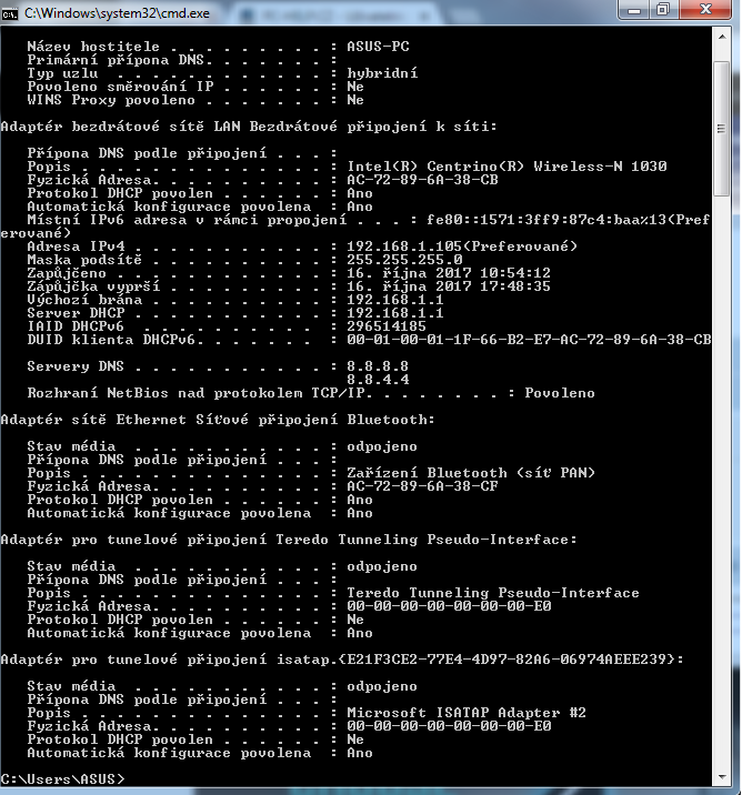 Přikládám screen z ipconfig, díky za každou odpověď a radu :)