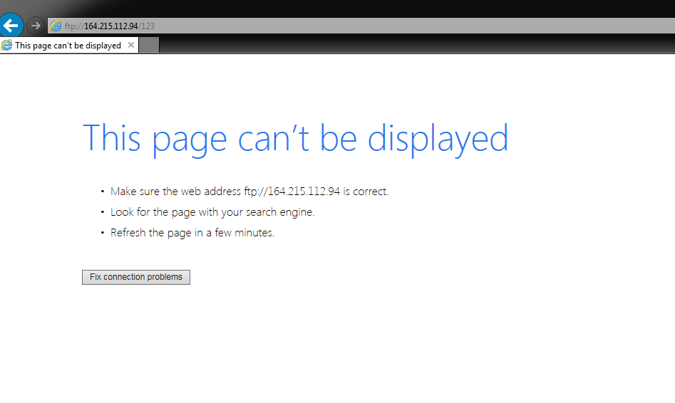 Když se ale chci připojit z venku, přes moji veřejnou IP adresu, IE jen načítá a skončí se zprávou - viz obrázek.