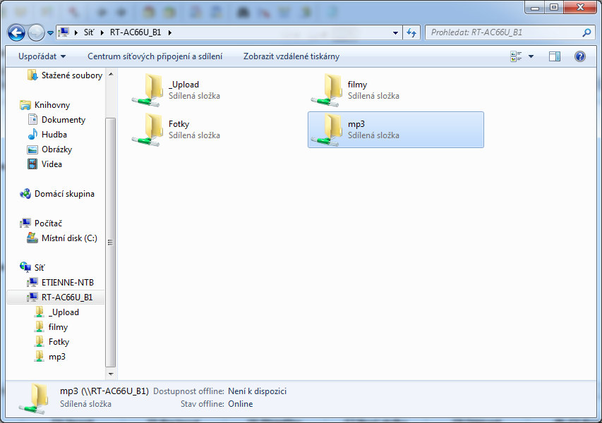 Do běžící routeru RT-AC51U jsem do USB portu připojil HDD. V nastavení routeru jsem povolil DLNA media server. Na stejné síti jsou dvě televize samsung, které vidí složky Video, Music a Photos toho media serveru a pravděpodobně by přehrály i jejich obsah. Bohužel na žádném z PC připojeným do té samé sítě nevidím výše zmíněné složky. Jinak HDD je normálně vidět - lze s ním pracovat jako se "síťovým" diskem. Nějaký nápad, jak naplnit složky DLNA? Zkoušel jsem i přístupy přes FTP a stále nic.
