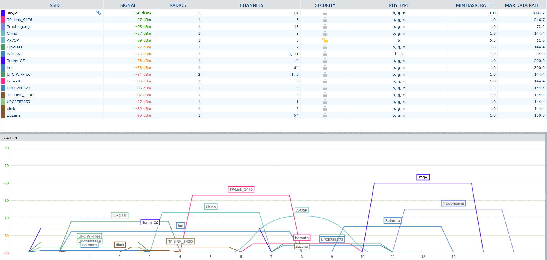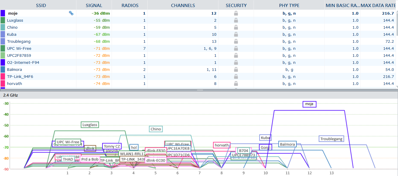 Více můj podpis - diagnostika wifi. Prověř, co tam začne večer vysílat.