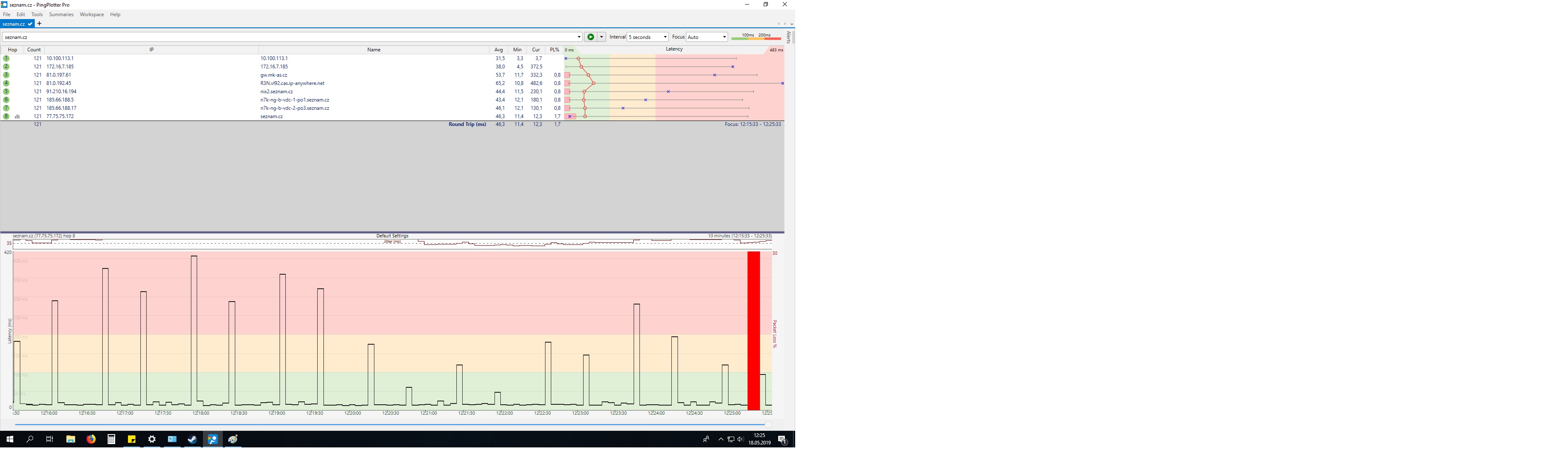 Ani nemusis. Ty vyskoky tam jsou i na seznamu, kde se nic nedeje. Prvni za cina na desitkove adrese, dalsi se prida v bode 172... Obrat se na providera, obe tyto adresy patri jemu. routerem to skutecne neni.