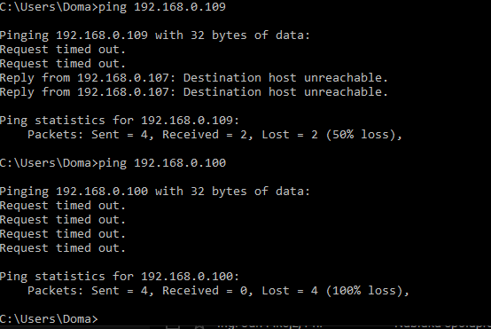 Navíc je zvláštní, že když pinguju tiskárnu (192.168.0.109), tak se v půlce změní ip adresa na 192.168.0.107 z nějakého důvodu, i když IP lease time ještě nevypršela, viz přiložený obrázek. 192.168.0.100 je IP adresa mého PC, který je připojen k hlavnímu routeru.