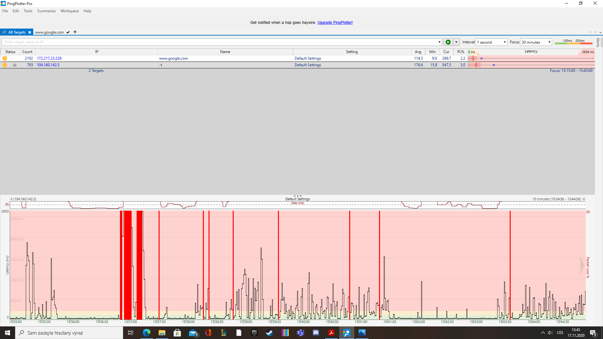 Špatné jsi mě pochopil. Ten screen z pingplotter chci. Ale podle toho návodu. Tak, abych něm bylo něco poznat.