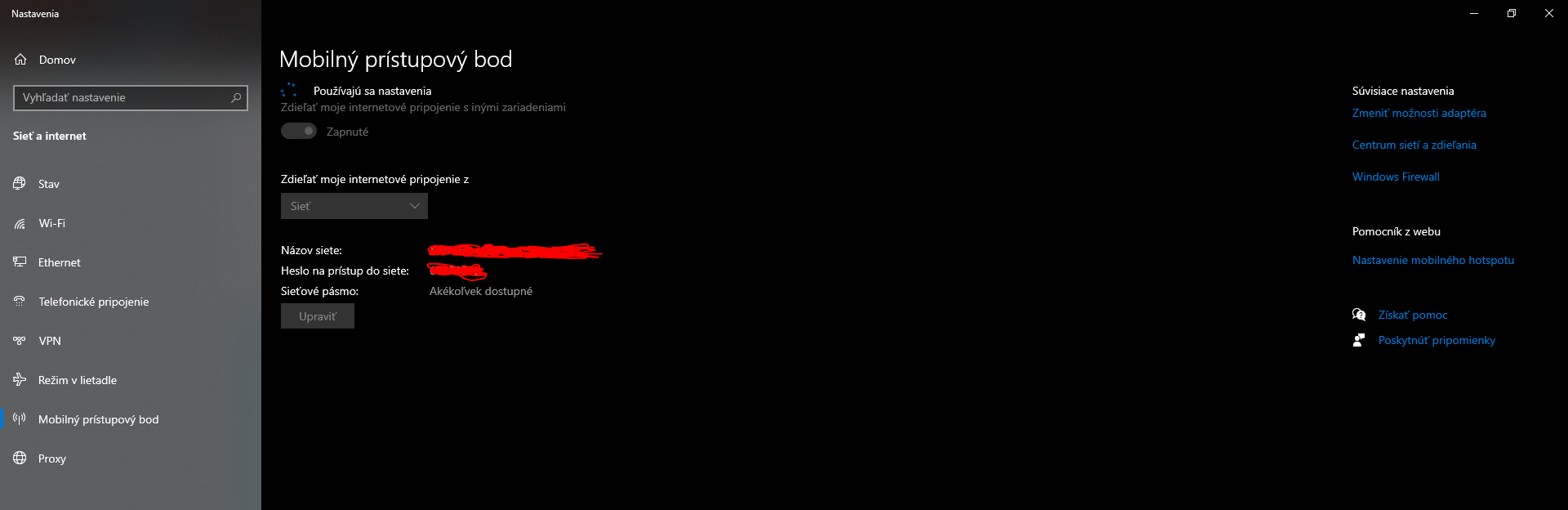 Mam NTB Lenovo Legion 5 s Windows 10 a mam problem s vytvorenim mobilneho pristupoveho bodu.