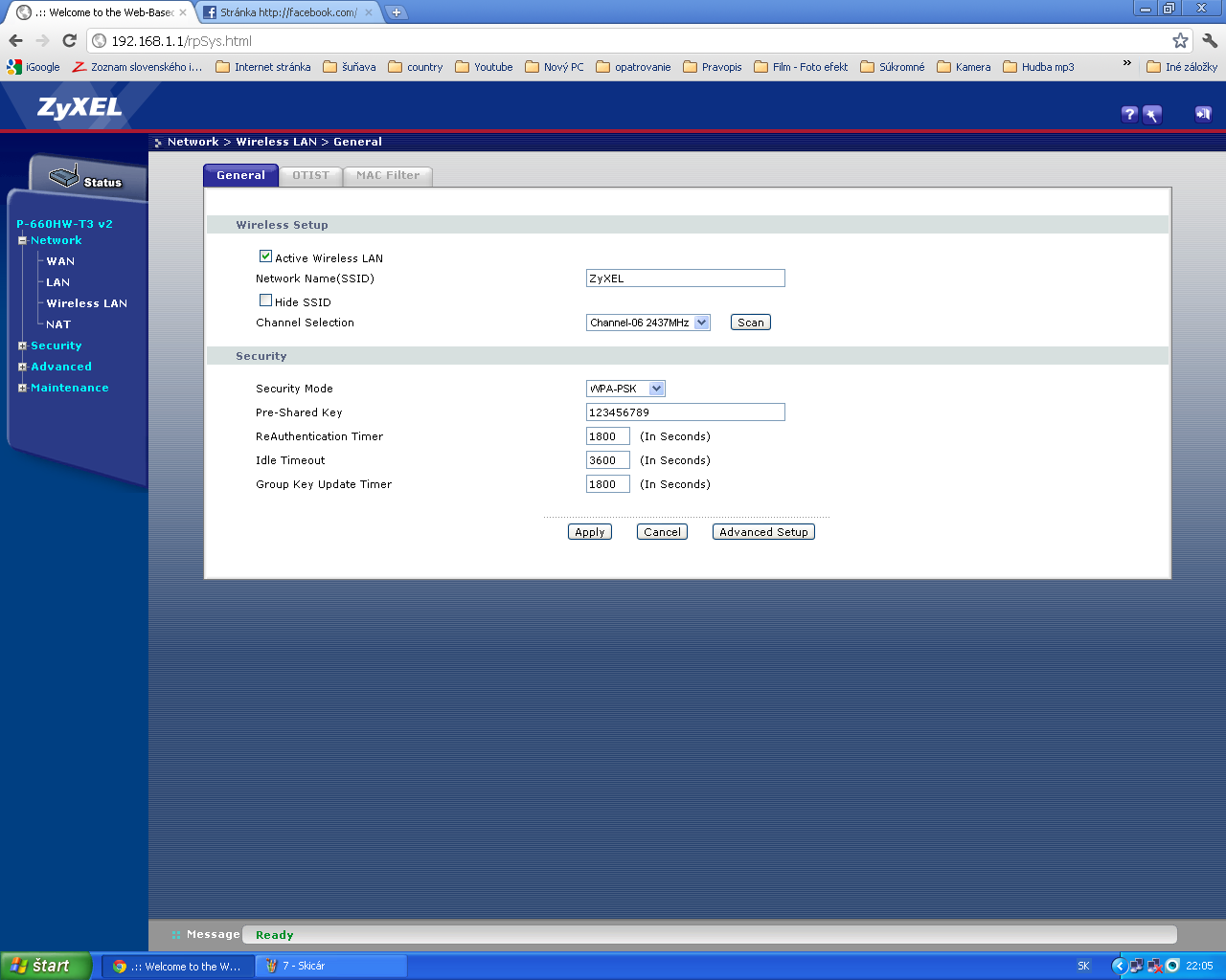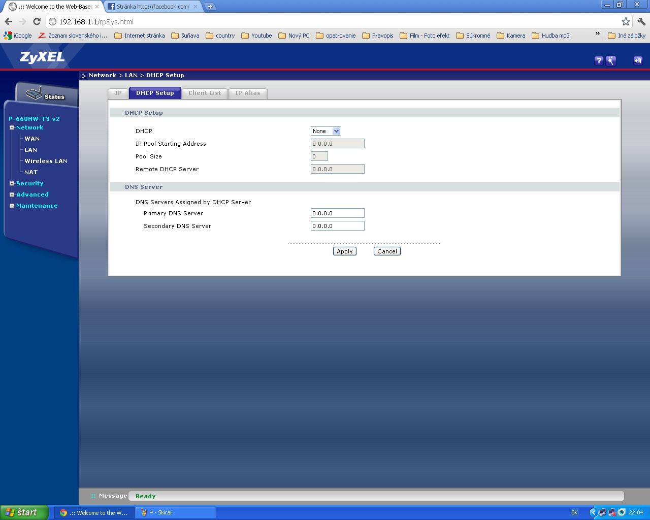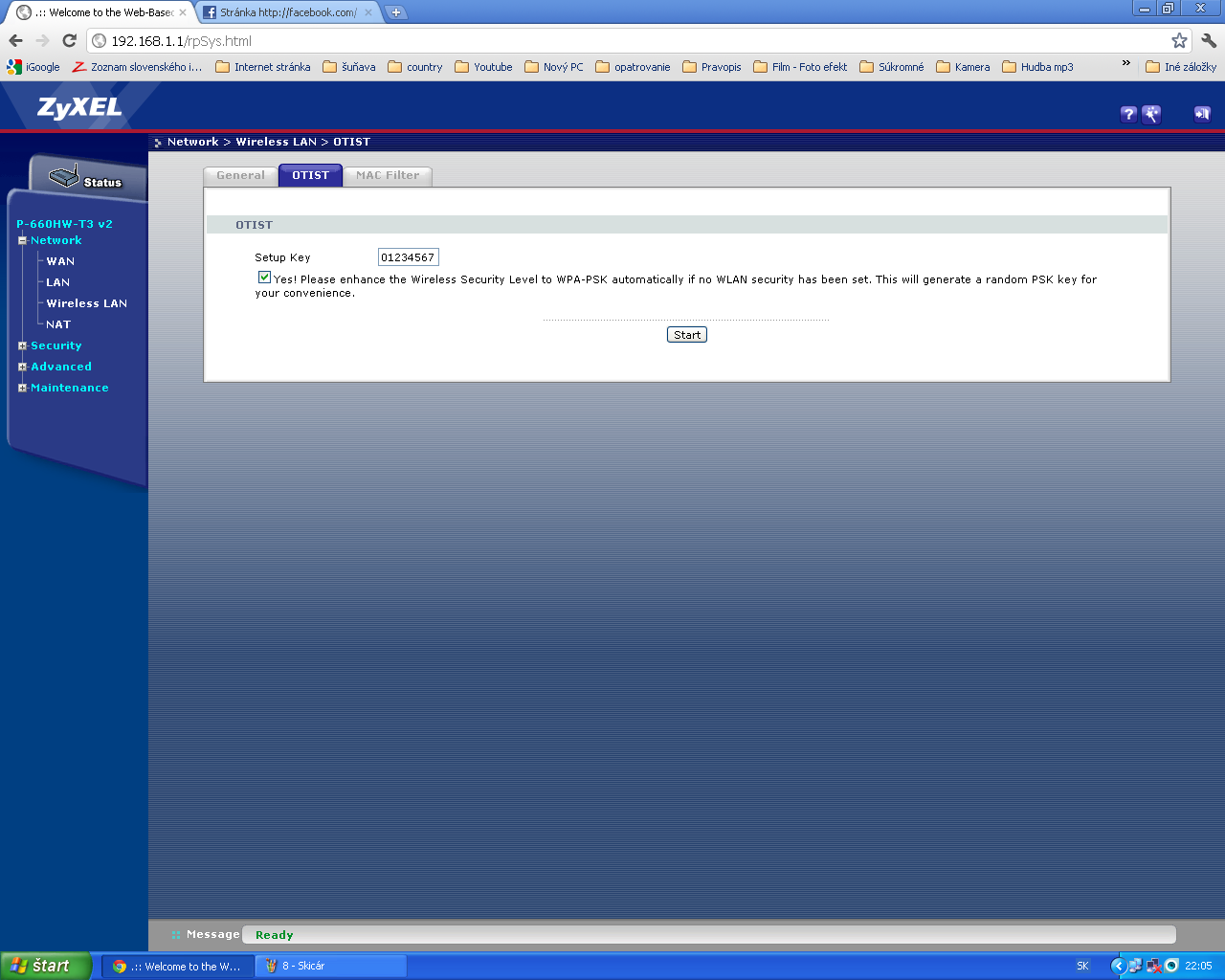 Mám taky Zyxela vydrž mrknu a napíšu, zatím vyresetuj nastavení vzadu na routeru (tužkou podrž reset 20 sekund) a minutu to nech nabootovat.
