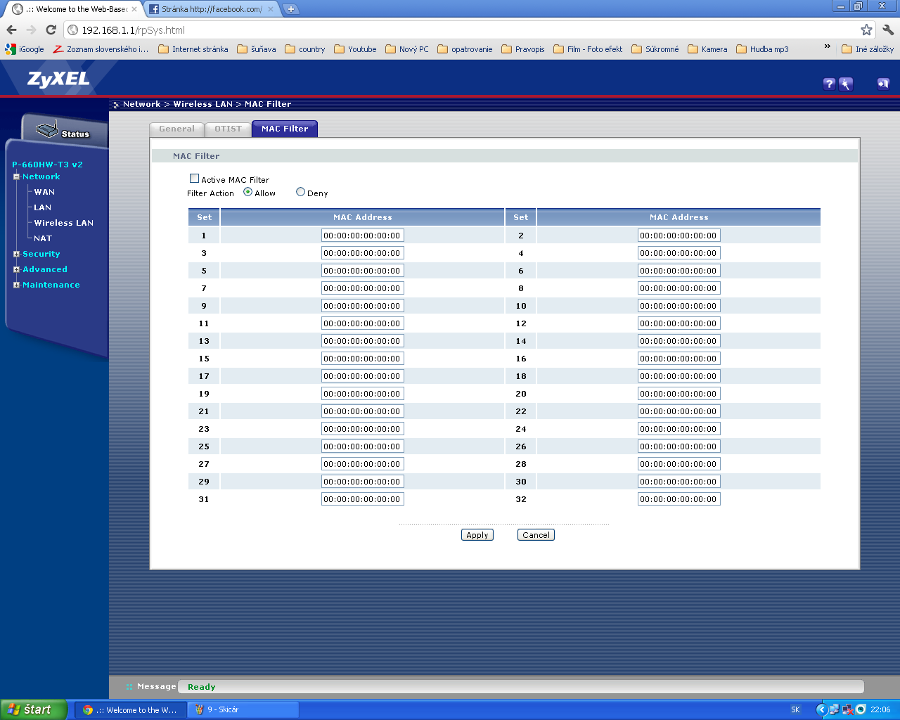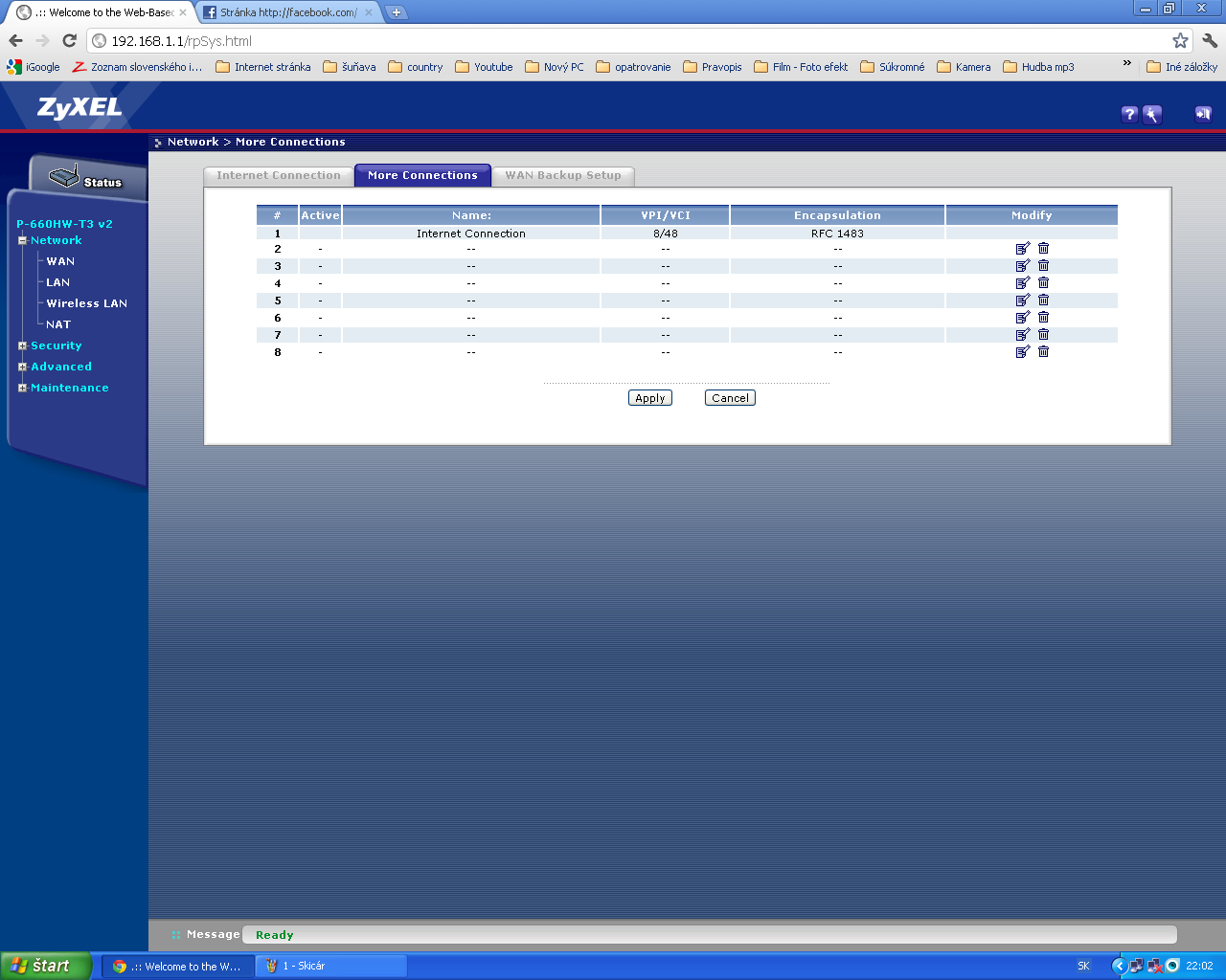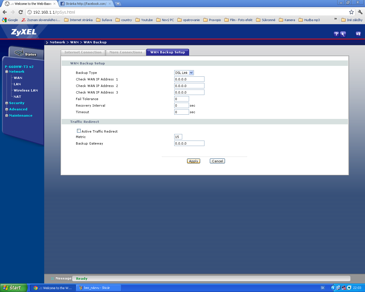 Mám taky Zyxela vydrž mrknu a napíšu, zatím vyresetuj nastavení vzadu na routeru (tužkou podrž reset 20 sekund) a minutu to nech nabootovat.