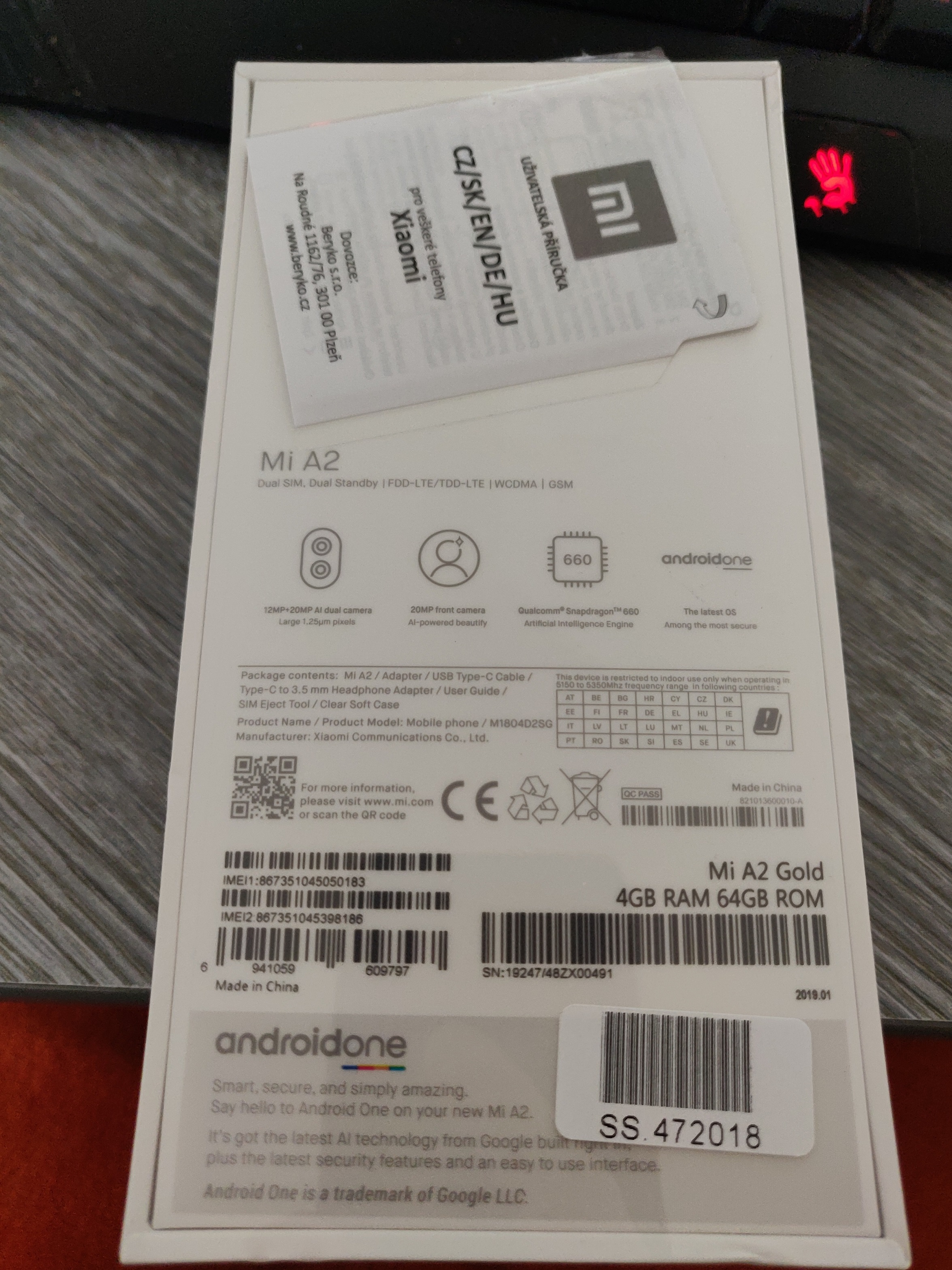 Nabízím k prodeji fungl nové zařízení Xiaomi Mi A2 ve verzi 4GB RAM a 64 GB interní uložiště. Zařízení je nové s dvouletou zárukou, faktura k dispozici.