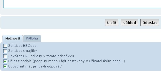 Ještě před odesláním do fóra je možné zobrazit Vámi napsanou zprávu tak jak ji uvidí ostatní stačí stisknout tlačítko náhled.