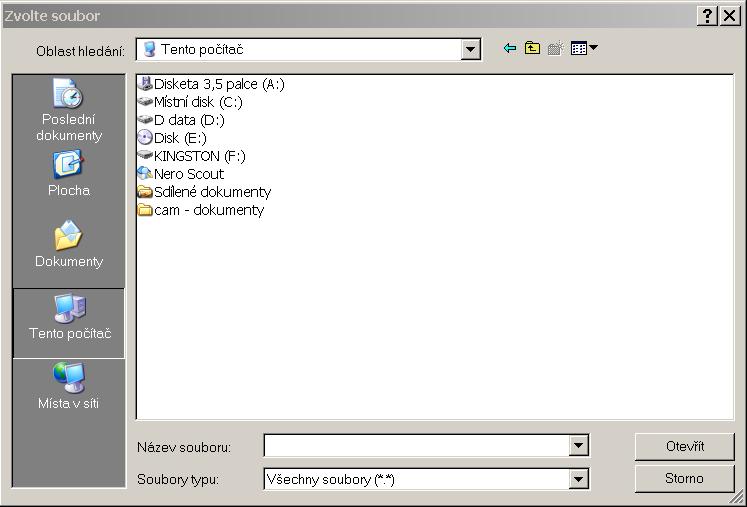 Po kliknutí na procházet se vám zobrazí dialog pro vyhledání umístění souboru, který chcete vložit jako přílohu. Po nalezení souboru provedeme dvojklik na tento soubor. Cesta k souboru se přepíše do "Název souboru". Po té klikneme na "Přiložit soubor"