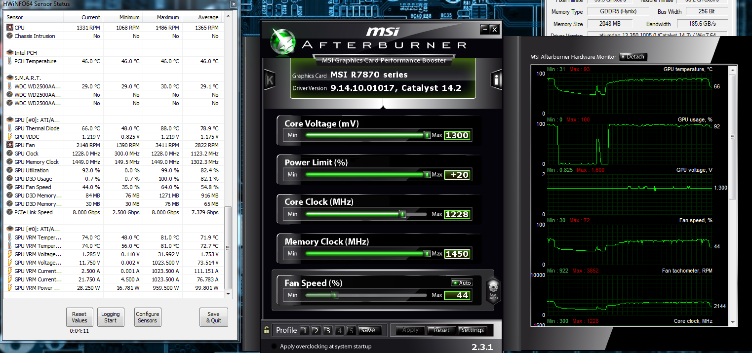 Klaňte se před mojí referenční GTX 760 :D Ve hrách jádro zvládá 1303 MHz, v UV 1.0 1280 MHz. Paměti běží na 7 GHz (Hynix)