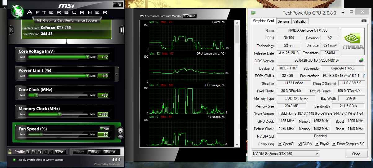 Gigabyte GTX 760, 1135/1652(6608)MHz.