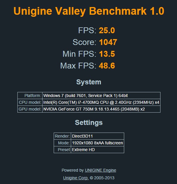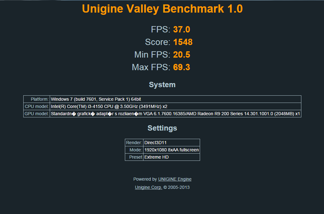 Re: Změřte výkon s ostatními v Unigine Valley 1.0