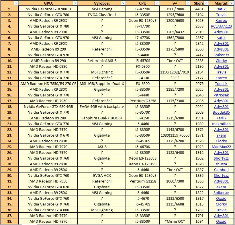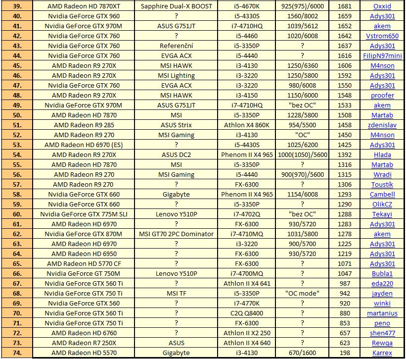 Přes 2000 bodů jsem dostal i HD 7950. GTX 960 mě trochu zklamala, stejné skóre jsem měl s GTX 760.