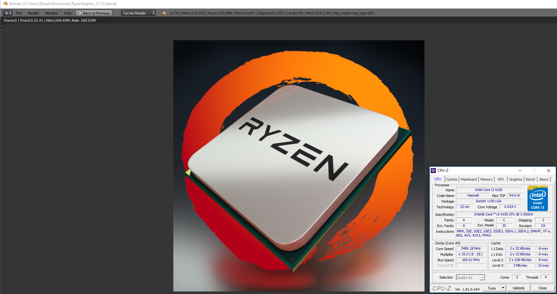 Čekal jsem lepší čas, už vzhledem k i3 8100 co zde postoval Adys, pak jsem si všiml že má novější verzi Blenderu. Tam jsou výsledky lepší, pro 150 vzorků 76s a pro 200 133s.