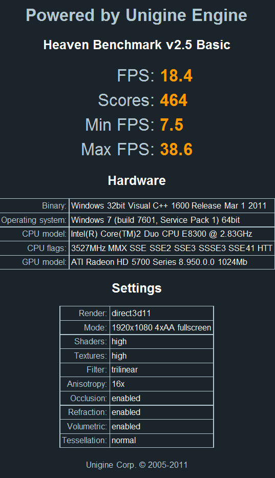 Myslím si, že to není špatný nápad dát sem i testy z Unique Heaven, akorát bych upravil trochu nastavení tak ať je to kompatibilní i s testem http://extrahardware.cnews.cz/test-16-d ... 2?page=0,2 . Takže potom to u mne dopadne takto: